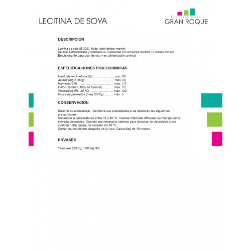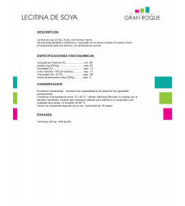 Ha sido estandarizada y mantiene su viscosidad con el tiempo durante 18 meses mínimo Emulsionante para uso técnico y en alimentación animal.